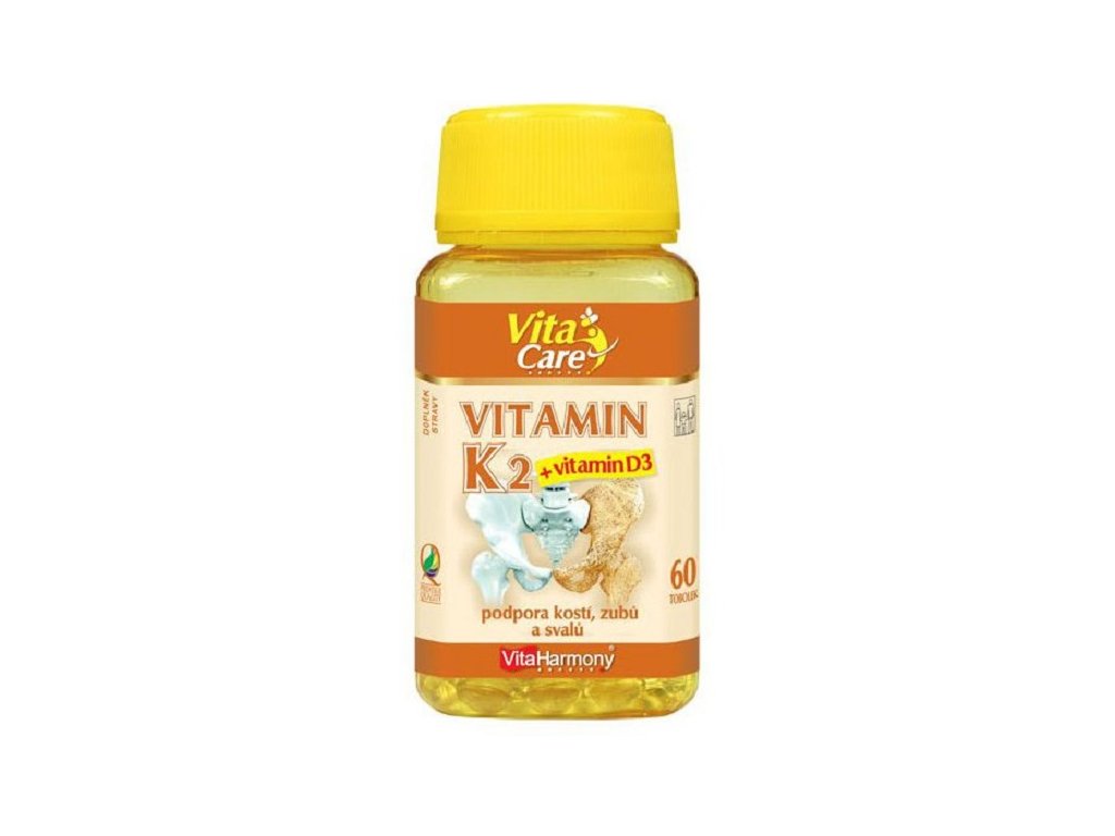 Vitamin K2 + vitamin D3 obsahuje vitamin K2 ve formě MK-7, který má výbornou vstřebatelnost a využitelnost v organismu. Vitamin K je rozpustný v tucích a má mnoho důležitých funkcí v našem organismu. Tento vitamin se vyskytuje ve dvou formách – vitamin K1 a vitamin K2. V poslední době bylo zjištěno, že vitamin K2 je velmi důležitý pro správný metabolismus vápníku v organismu a podílí se na udržování normálního stavu kostí. Tento vitamin působí v organismu společně s vitaminem D3, který zajišťuje správný transport vápníku do krve. Poté vitamin K2 napomáhá správnému zabudování vápníku do kostní struktury. Tyto vitaminy působí synergicky společně s hořčíkem a vápníkem, a proto se doporučuje jejich společný příjem. Ideálním zdrojem vápníku ve stravě jsou například mléko a mléčné výrobky a mezi nejlepší zdroje hořčíku se řadí listová zelenina nebo ořechy. Optimální příjem vápníku, hořčíku, vitaminu D3 i K2 Vám bezpečně zajistí i kvalitní doplňky stravy.